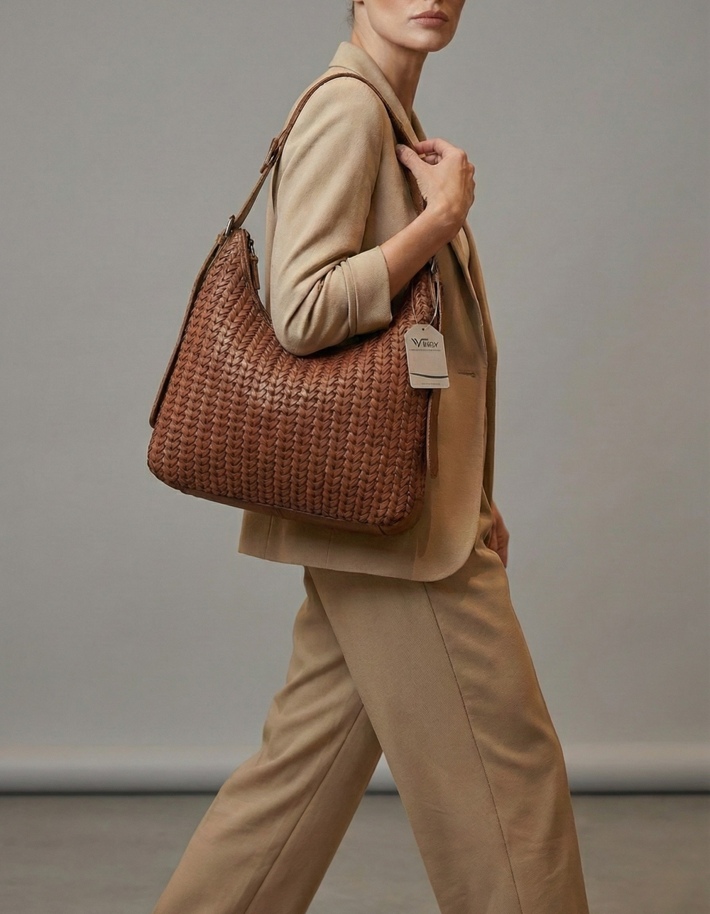 Crafted for women who appreciate artisanal luxury, this handwoven genuine leather shoulder bag showcases exceptional craftsmanship with its beautifully braided leather texture. Made from premium-quality genuine leather, the bag features a soft hobo silhouette that effortlessly blends style, comfort, and everyday practicality.