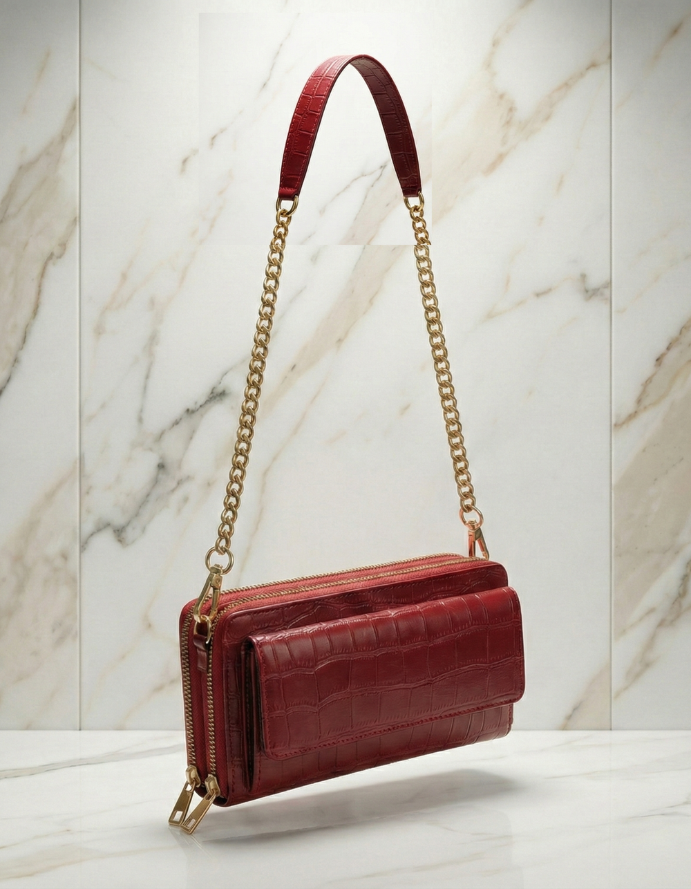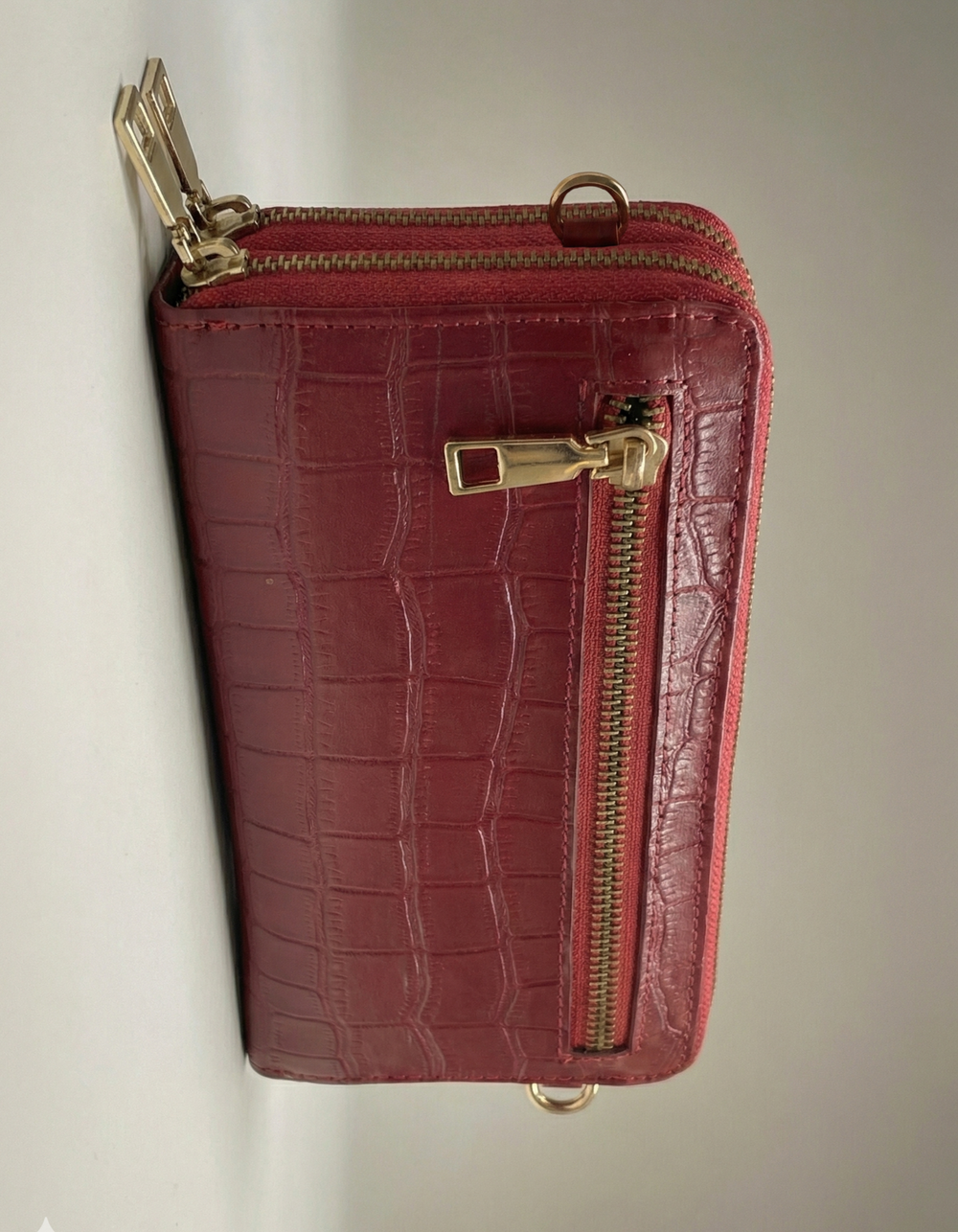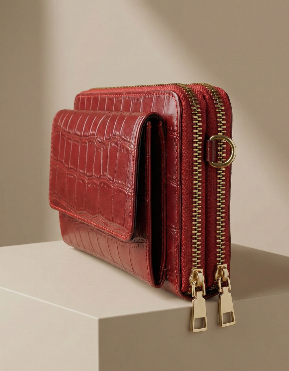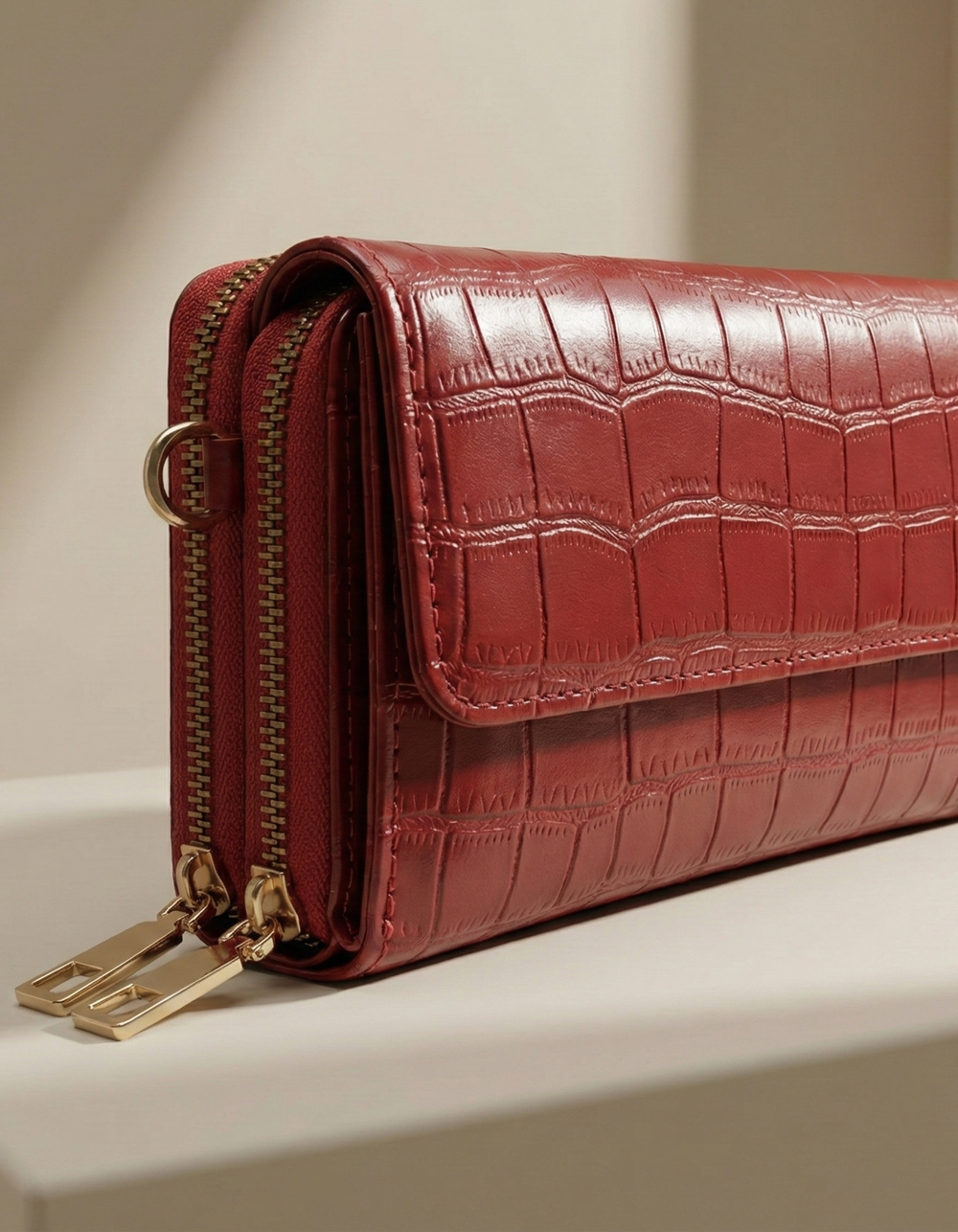 Elevate your everyday style with this women’s croc-embossed leather zip wallet, crafted from high-quality genuine leather with a rich maroon finish. The crocodile-textured pattern adds a luxurious touch, making this wallet a perfect blend of elegance and functionality.